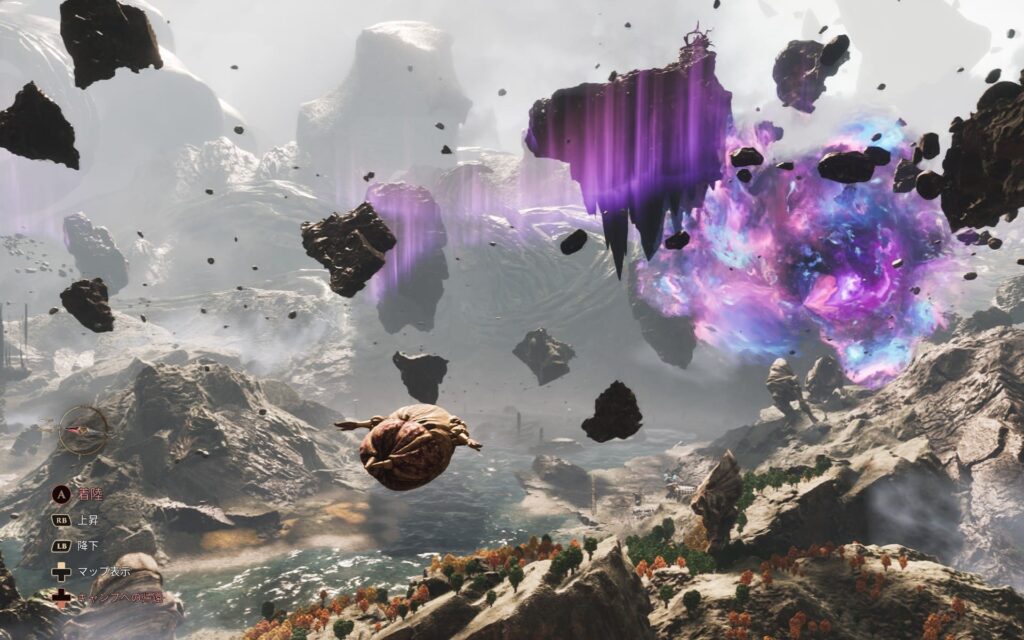 快適にプレイすることが出来ます。空中に浮遊してマップを読み込むときに少しカクツキますが、フィールド上やバトルなど特にストレスなく遊ぶことが出来ました。Unreal Engine5で作られた高グラフィックゲームでも、このゲームの様に激しい動きの少ないゲームであれば問題なく遊ぶことが出来そうです。