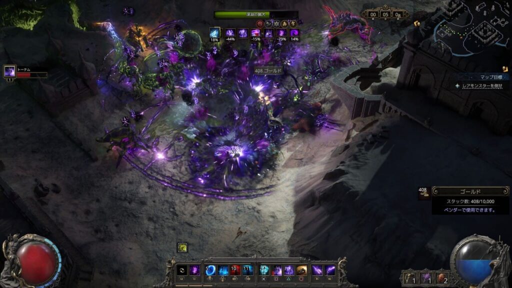 ハクスラゲームなので装備のドロップを楽しむのも楽しいのですが、今作に関しては装備直ドロをいつまでも時間かけて狙うよりも、高価な通貨アイテムを集めてトレードする方が確実にゲームを進めることが出来るので楽しいです。