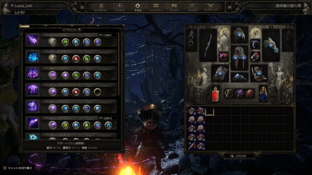 アセンダンシーポイントは「エルドリッチエンパワーメント」を取得しており、呪い状態の敵がけっこう爆発して消えていくのでかなり気持ちいいです。