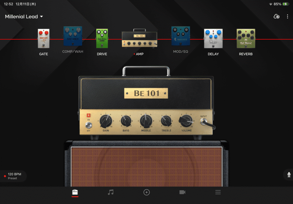 なんと約33種類のアンプモデルと約43種類のエフェクトを色々組み合わせて使うことが出来るのです。しかも無料。アンプとスマホをBluetoothでつなぐだけなので接続も簡単です。